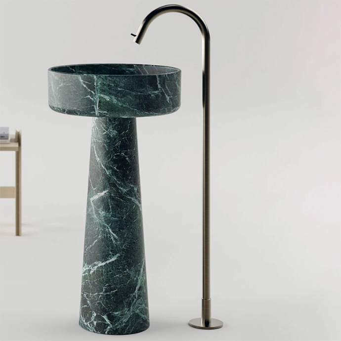 Mangiarotti’s green marble icon turns the basin into sculpture.