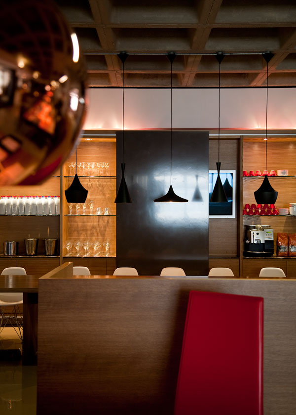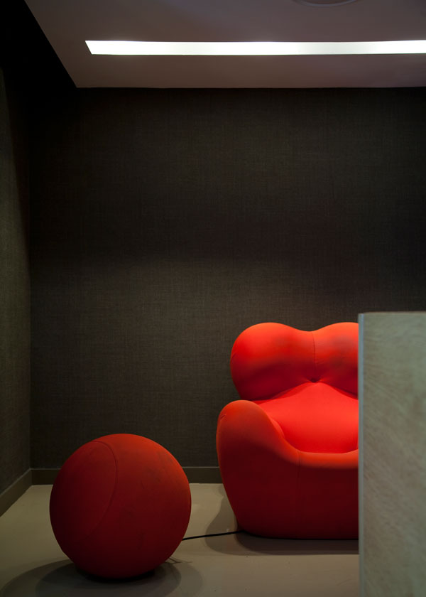 It’s hard not to love an office without fluorescent lighting and where cool music permanently plays on the iPod. The bar area outside could easily belong to a trendy boutique hotel and the loos featuring Fornasetti wallpaper are quite compelling.