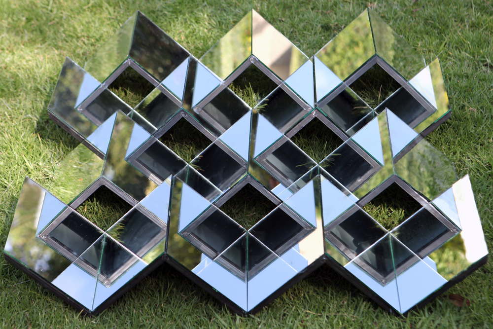 Perspective, whether societal, historical or geographical, is an important theme running through his work, hence the lines crisscross and intersect to form shapes that overlap and collide, depending on your position as the viewer, leaving the final interpretation of the work up to you. Some pieces, such as the fragmented stainless-steel sculpture, Exploded Kaleidoscope (above), are devices through which you can look at the world and form your own views based on your point of view.