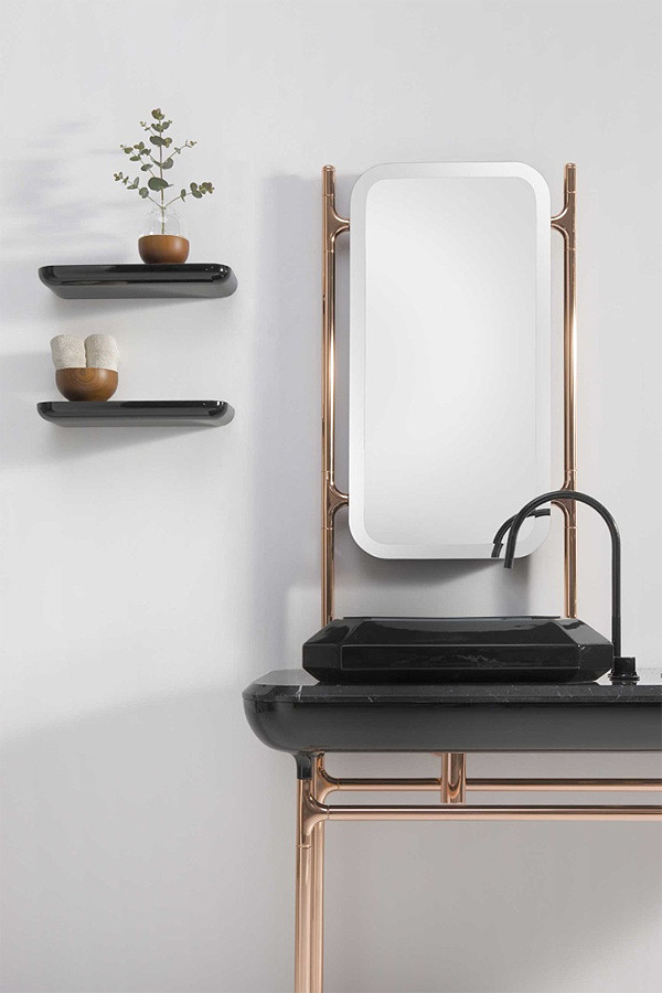 With this collection, which includes console tables and cabinets as well as basins, baths, brassware, shower screens, mirrors, lighting and a variety of accessories and decorative items, the bathroom becomes a stylish room with a strong identity.