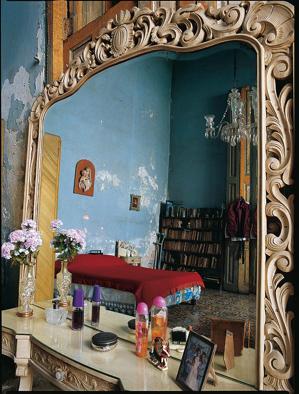 The two and three-storey houses have high ceilings, cool marble floors and courtyards where palms provide some shade. Inside, the occupants manage with what they’ve managed to collect over the years – anything from antique furniture to 1950s Formica kitchen cupboards. Faded pictures of Fidel, Che, Catholic saints, framed family photographs and plastic flower arrangements adorn every room.