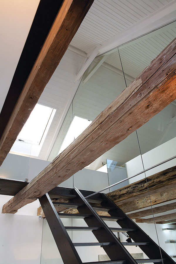 Well, at least he can still see it. Almost. If he stands on tiptoe and carefully peers out of one of the ample skylights that brighten the loft-like master bedroom upstairs.