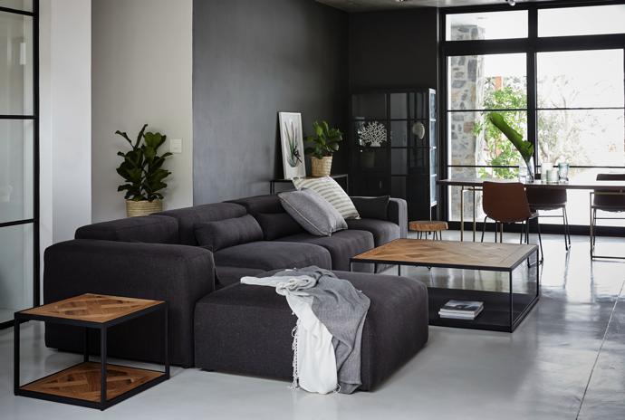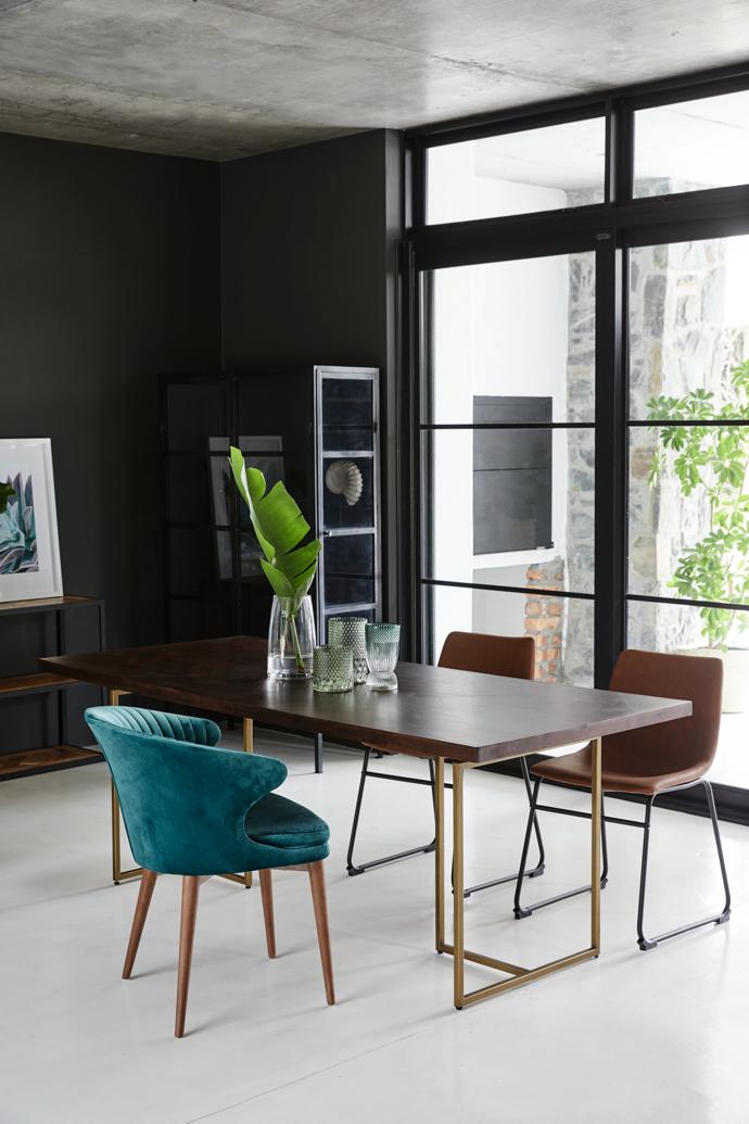 Warm, brushed metal details add a modern, glamorous touch while industrial metal-framed furniture modernises interiors.