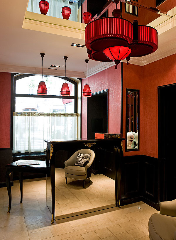 Taking its name from the proximity of the Luxembourg gardens, the hotel – designed by Alexandre Danan – is a contemporary space nevertheless inspired by classic designs. After a long day there is no better place to relax than in the intimate lobby, where oak and stone, accented with red, create a calm and comfortable environment. The period staircase and wooden spiral ramp to the upper floors are particularly striking features of the hotel.