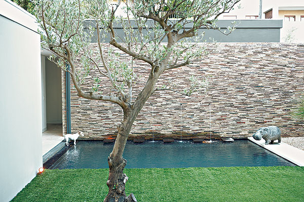The brief by the husband-and-wife team to the architects, Bert Pepler Architecture and Interiors, was clear: the existing wild olive trees on the plot had to be retained, and they wanted a contemporary home with no corridors, walls, visible cupboards – or even a kitchen! The reason for the last request? They are both too busy to cook and decided to build for themselves rather than to meet the needs of some future, unknown buyer.