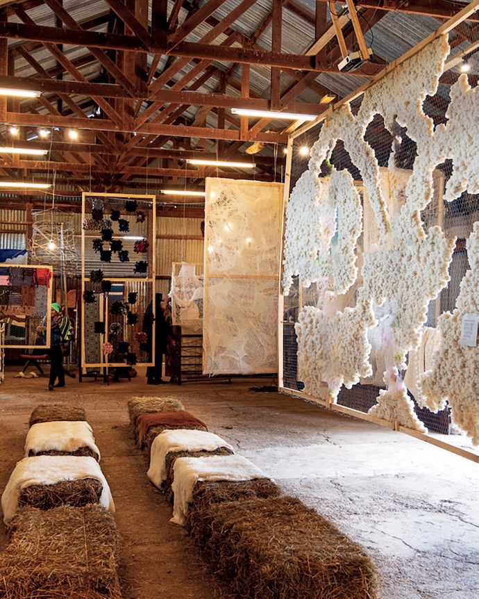 Set in a functioning shearing shed – where the wool journey begins – the exhibition offered visitors both a literal and a metaphorical walk through the four seasons of the Karoo. Each space was created using natural, locally sourced materials, as well as found objects from the working sheep farm. The exhibition highlighted the versatility and emotional weight of wool, and the vital role it plays in South African heritage – but it was also a tribute to the farm-to-fibre ecosystem.