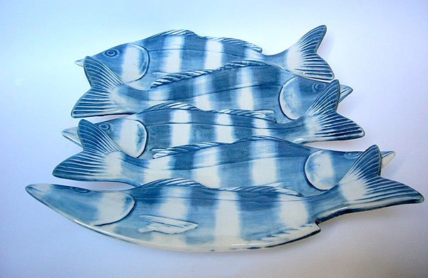 I distil what it is that has first inspired me – a butterfly that just fluttered past, or rather the way that the orange on its wings smudges to brown, then black, then – sharp as the crack of a whip – to white. Using a butterfly literally could be clichéd and kitsch, but on closer examination every person would extract their own unique essence from the same source, which is interesting to share. I can also be literal though, remembering the satisfaction of returning from a day at sea with a laaitjie full of fish destined for the table, or a basket of sea creatures after spending the morning on the rocks at low tide. These days I cannot bring myself to kill fish for fun, there are so few left! So I carve and paint them into bowls instead, and snorkel in marine reserves to observe them going about their daily life. Fish mean a lot to me, and I know them so well that I find it disturbing when they are used as a motif in a poorly observed and misunderstood way.