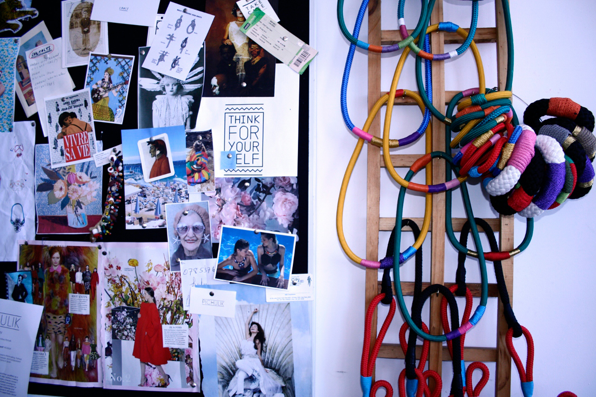 Katherine-Mary Pichulik’s African and Indian-inspired necklaces and bangles made out of rope and found objects have the stylista set in a tizz trying to get their hands on a piece. Visit any South African fashion blog and you’re bound to see one of her custom-made ornate pieces sporting pom-poms, colourful bells and just about anything else that inspires her, as seen on the jewellery she designed for Jupiter Drawing Room’s Constructus creative workshop pictured above.