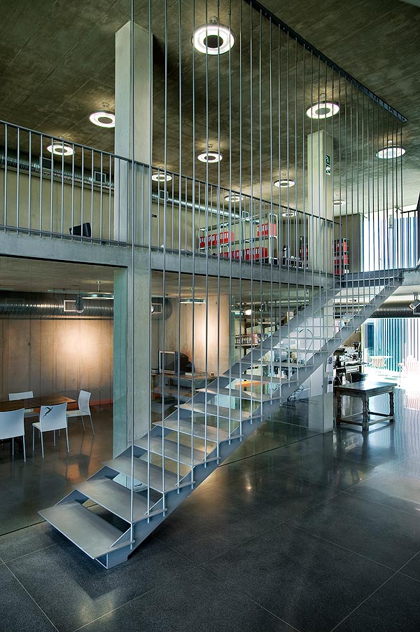 Die uiteindelike gebou nooi die besoeker binne deur ’n groen glas-ingang – ’n sagte wond in die donker pantser van die buite-kant. Binne loop ’n glasgang waardeur ’n mens die proelaboratorium, raadskamer en barista-koffiekroeg aan al twee kante kan sien. ’n Gemaklike staaltrap loop op na die eerste verdieping met sy kantore; hier is ’n mens die heeltyd bewus van die rooster- aanleg onder jou. Dit sorg vir ’n sterk gevoel dat alles verbind is.