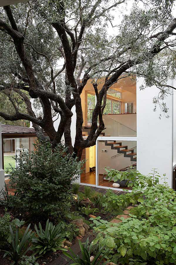 Probleem nommer twee, die olienhoutboom, het heelwat fyn meet- en paswerk vereis: ’n Tak of wat het in die slag gebly en die boomwortels moes met sakke toegedraai word om te keer dat die beton vir die fondasie dit beskadig. Tog, nou meer as ’n jaar sedert die bouspan weg is, staan die boom steeds hier, grasgroen van geluk, op presies dieselfde plek waar dit gestaan het toe mnr. H. se ouers destyds die huis laat bou het.