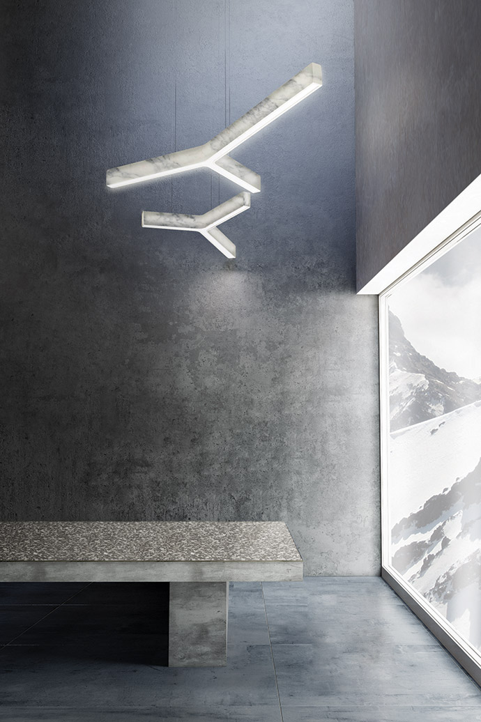 Consisting of two thin 8 mm marble rings cut from a single block of Carrara marble with a glass diffuser, the Light Beam Circle from Inarchi will become a focal point in any space.