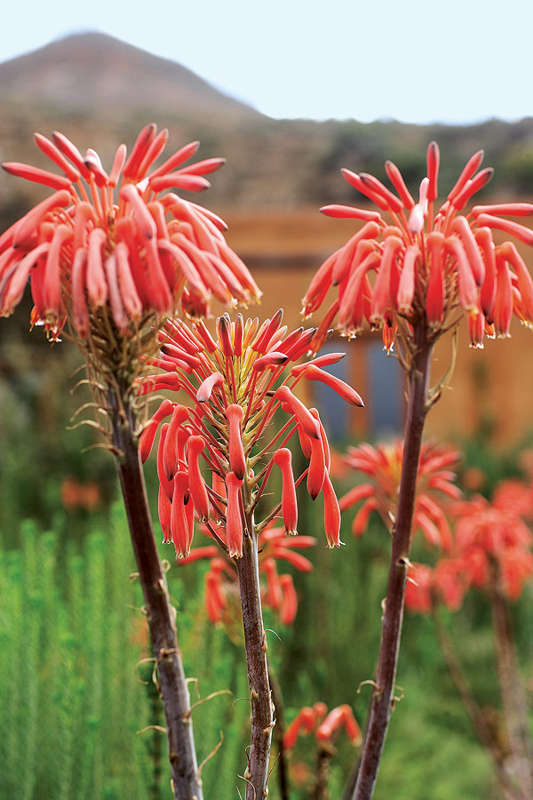 What’s most extraordinary about Voëlvlei is that it is utterly at one with its location. Everything used in its construction was made here, mostly by hand using local know-how. The bricks were fired locally from Barrydale clay, while the dry-packed stone walls, built of slate from the farm and used to enhance its façade and encircle the vegetable garden, were built using a technique imported to the district by Italian prisoners of war in the 1940s.