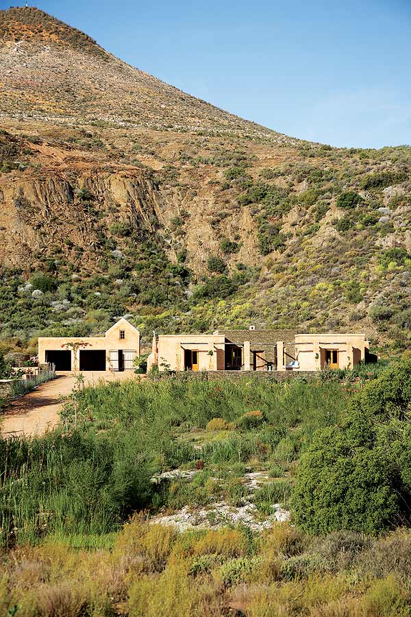 A new house has emerged from the fertile land outside barrydale, yet it appears to have always rested under the protection of the surrounding mountains.