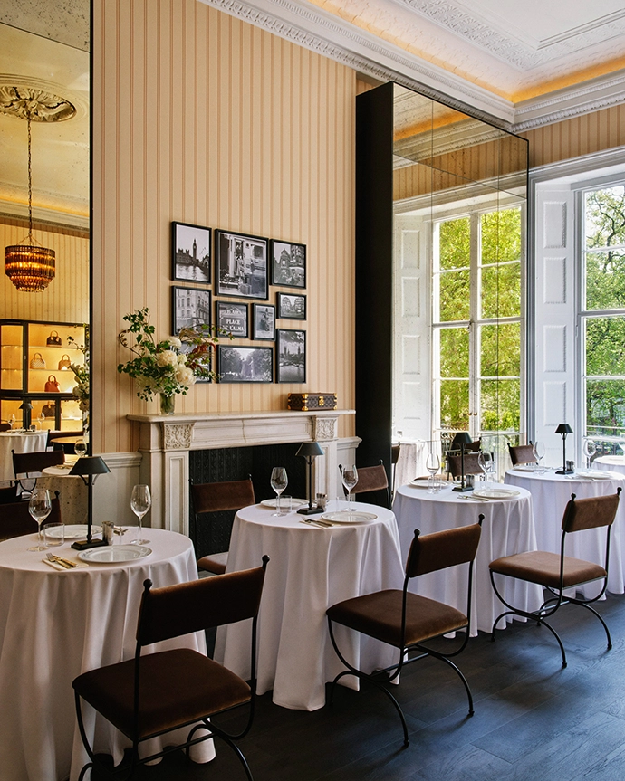 Bar Noé sits on the lower-ground floor. The intimate champagne and cocktail bar pays tribute to the origins of the bag’s design. Created in 1932 at the request of a champagne producer, the Noé began as a simple yet brilliant idea: a bag to carry five bottles of bubbles – four upright and one inverted in the centre. By day, guests are invited to enjoy a crisp flute of champagne. As evening falls, Bar Noé transforms into a vibrant Mayfair destination, with curated DJs on Thursday, Friday and Saturday nights.