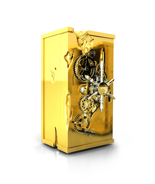 This unashamedly ostentatious safe (aptly dubbed ‘Millionaire’) is made from mahogany, coated in highly polished bronze and then dipped in gold. It has lockable drawers to keep valuables safe.