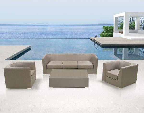 The Mobelli outdoor upholstered collection is made from powder-coated aluminium. This ensures resistance to rust and allows for exceptional strength. The frame is covered with quick dry foam, which lets out any water that may penetrate the surface. Not only will the furniture dry quickly, it will also be resistant to mould and mildew, which tends to develop on normal, lower quality foam.