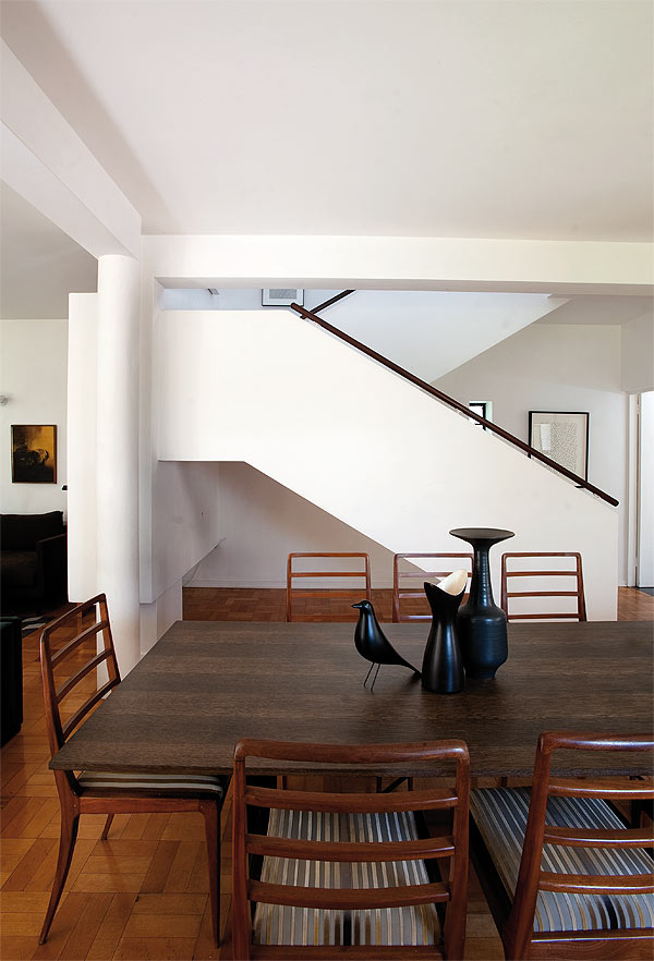 Die afgelope twee jaar is Martienssen se huis nie net een van die beste voorbeelde van die Modernistiese argitektuur nie, maar ook die perfekte tuiste vir Philippe en Carmen se spogversameling meubels en kuns. Twee Barcelona-stoele deur Ludwig Mies van der Rohe vorm die fokuspunt in die leefruimte en kon net sowel in die huis gestaan het toe dit nog aan Martienssen behoort het. Die meeste ander meubelstukke is deur Tonic, wie se ontwerpfilosofie juis deur die Modernistiese beweging en spesifiek Skandinawiese ontwerp geïnspireer is, sê Philippe.