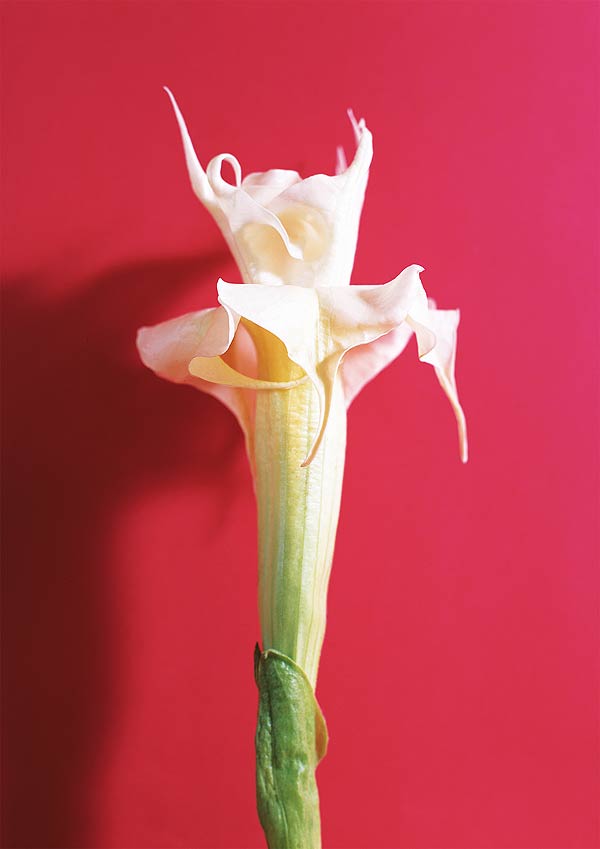 Garden flowers such as asters, roses and bougainvilleas have fixed colours, unchanging no matter the light. Moonflowers are opalescent because the trumpet is all structure, like a little Modernist building. The ribs are flying buttresses to hold the flower open, bringing the colour to life like a dragonfly’s wing.