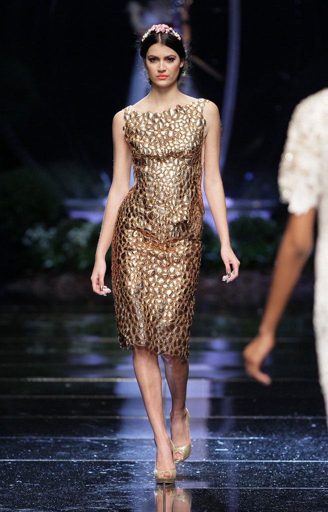 Pebble Dress by Gavin Rajah : Nominated by our very own Malibongwe Tyilo, this dress from Gavin’s Spring/Summer 2013 couture collection was made from leather cuts that were moulded into pebble shapes and hand-embroidered onto a mesh dress. SMS “MBOISA Rajah” to 43431 to vote for it.|
