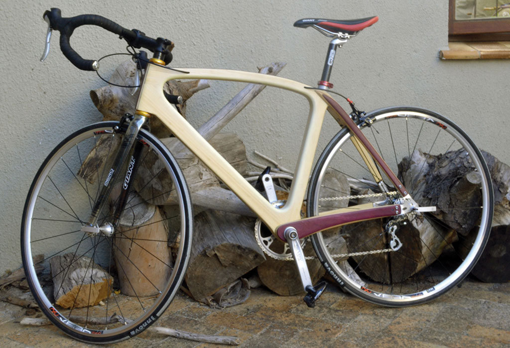 Wood and Carbon Bike by David Stubbs : This light, 10-speed racing bike combines wood and carbon, and is unlike anything produced in SA. Nominated by the Design Indaba team, "it is inspiring to see one artisan elevating bicycle design to a work of handmade art.” SMS “MBOISA Stubbs” to 43431.|