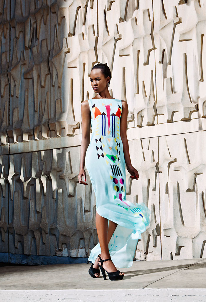 Aretha Dress by Sindiso Khumalo : Named after Aretha Franklin, this dress is made from digitally printed 100% silk chiffon. Nominated by Robynne Kahn: "She has taken what feels like a traditional, tribal influence and interpreted it live now." SMS “MBOISA Khumalo” to 43431.|