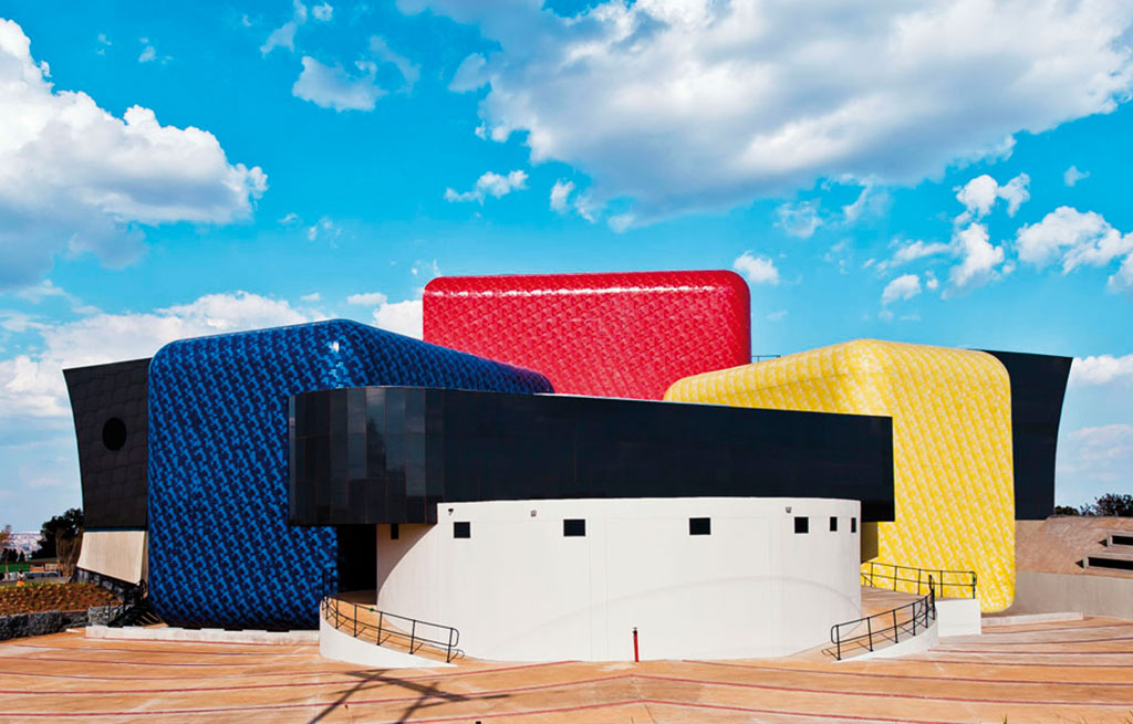 The Soweto Theatre by Lawrence Chibwe, Afritects Architects : The building represents the vibrancy, personality and excitement of performance in Soweto. Nominated by Laureen Rossouw from ELLE Decoration: “I love the confident, bold, colourful architecture of this iconic theatre." SMS “MBOISA Afritects” to 43431.|