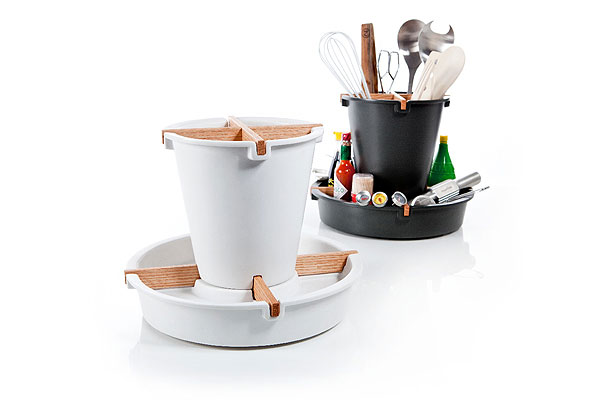 This attractive and handy device makes storing and accessing everyday cooking utensils and accessories a cinch. Designed by Brit Simon Wilkinson the Lazy Linda makes a handsome addition to the modern kitchen, and is made to stand out rather than be hidden in drawers and cupboards along with other kitchen kit.