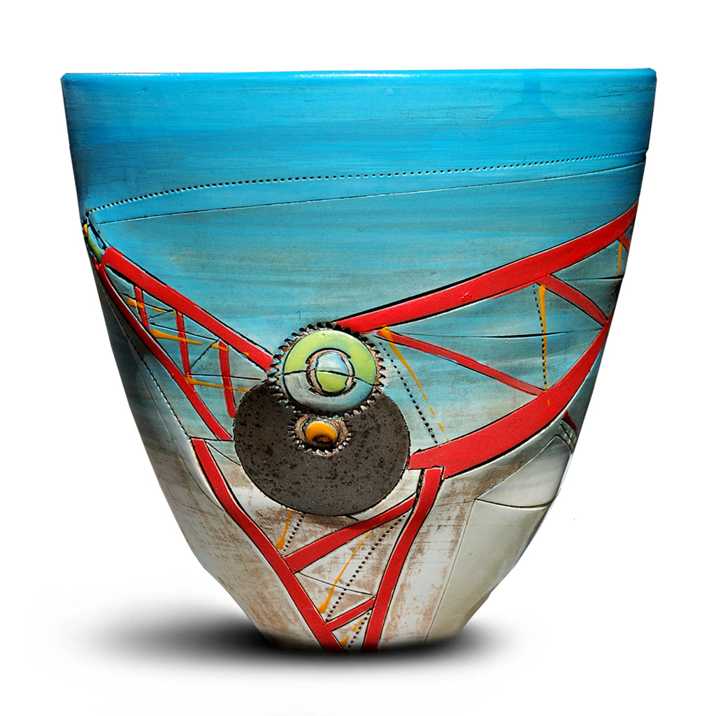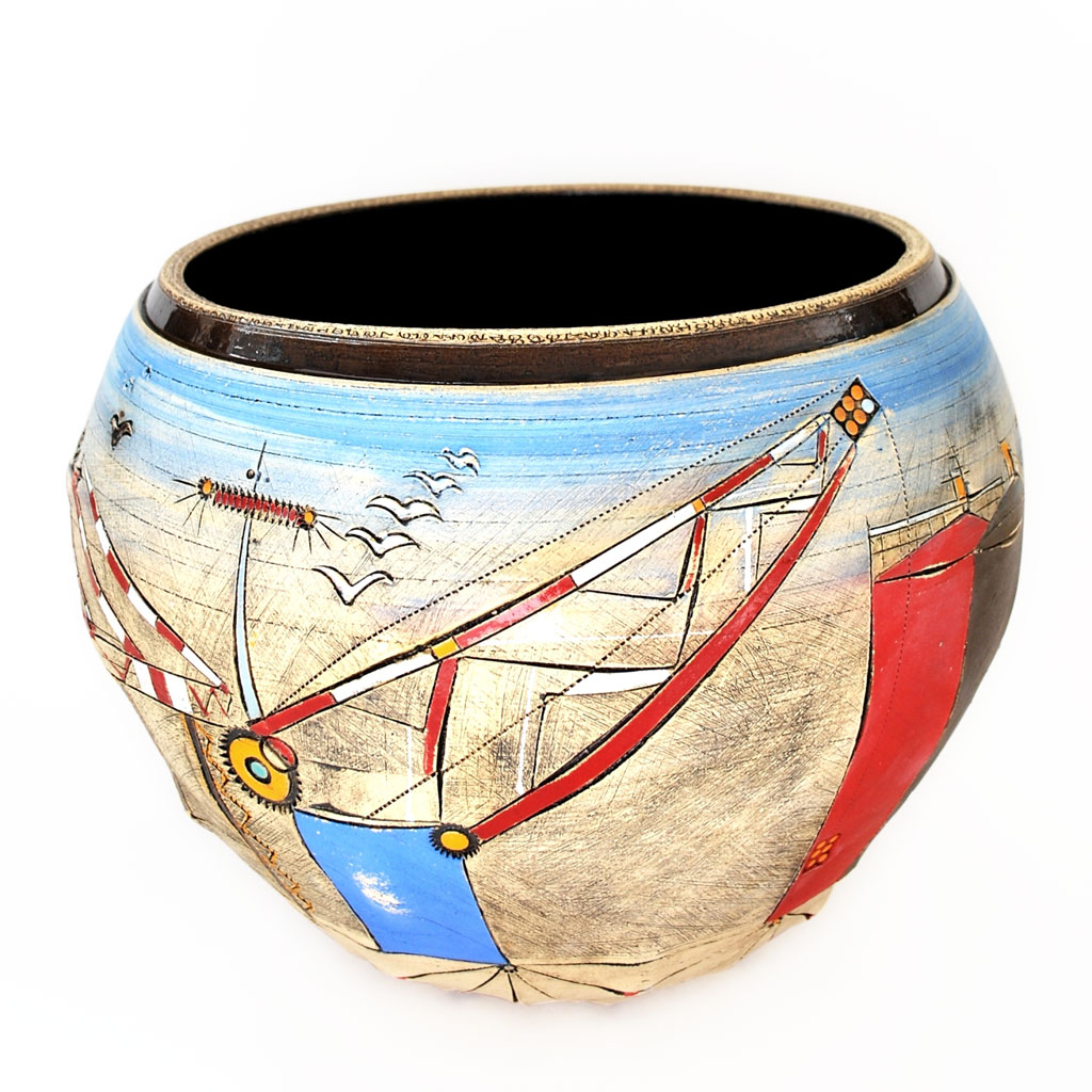 Whether skin or clay came first, the resulting laptop, bowling and clutch bags are original, to say the least. Moreover, as exemplified by the leather belts with ceramic buckles, these designs are wearable “objets de céramique”.