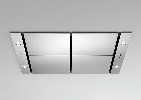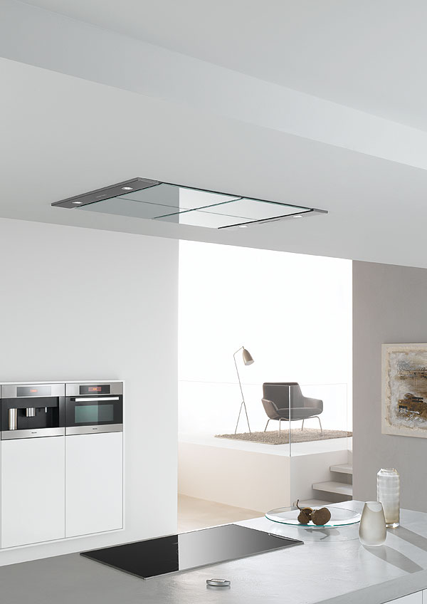 In modern kitchens, a cooking island often represents the transition from kitchen to dining room or living room. A giant extractor hood above the island can be unsightly and obstruct the view into the next room. Miele’s new DA 2900 ceiling extractor therefore sets a new standard in terms of discreet design and energy efficiency.