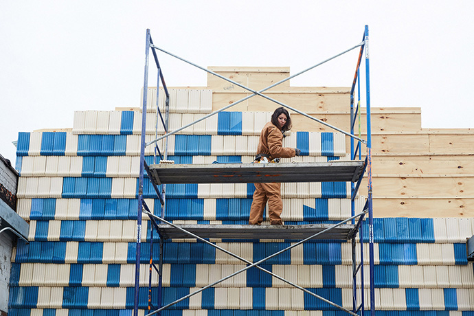 “UK architecture studio Assemble (who we previously featured here) has temporarily transformed the façade of a warehouse in the US (their first project in America) with a series of patchwork tiles,” says Online Editor Lindi Brownell Meiring. “I really love this studio’s work.”