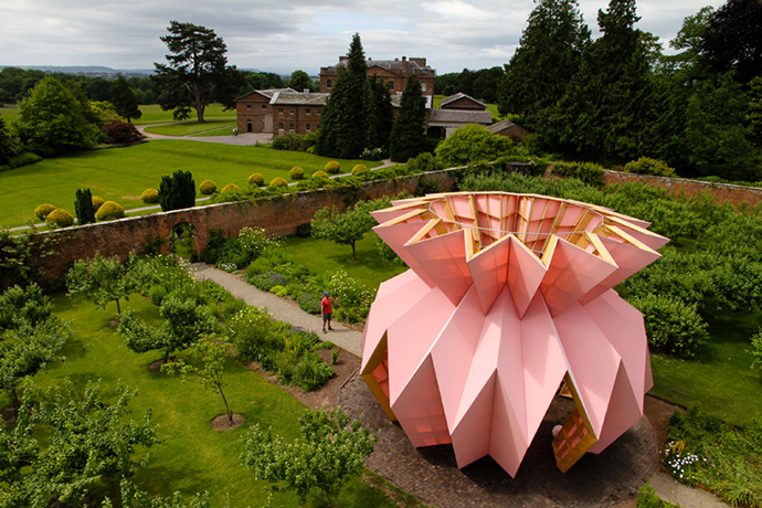 “This pink pavilion designed by Studio Morison has been placed in the middle of a Georgian mansion in Herefordshire in the UK,” says Online Editor Lindi Brownell Meiring. “The specially made woven fabric that covers the structure can withstand any weather and is inspired by a traditional Georgian colour palette.”