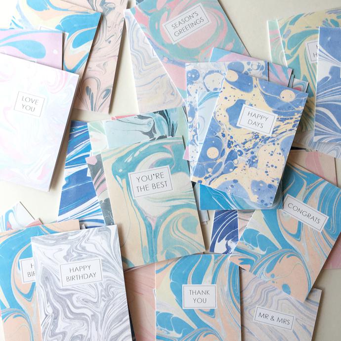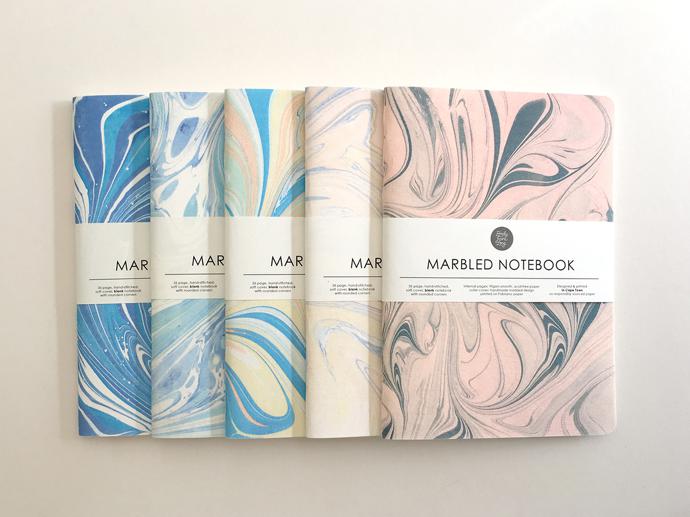 “Local artist Emily Jane Long has launched a new collection of notebooks, gift tags and cards,” says Editor-In-Chief Sumien Brink. The designs have been marbled by hand using ink and paint, before being scanned and printed and there is a variety of each colour and pattern available.”