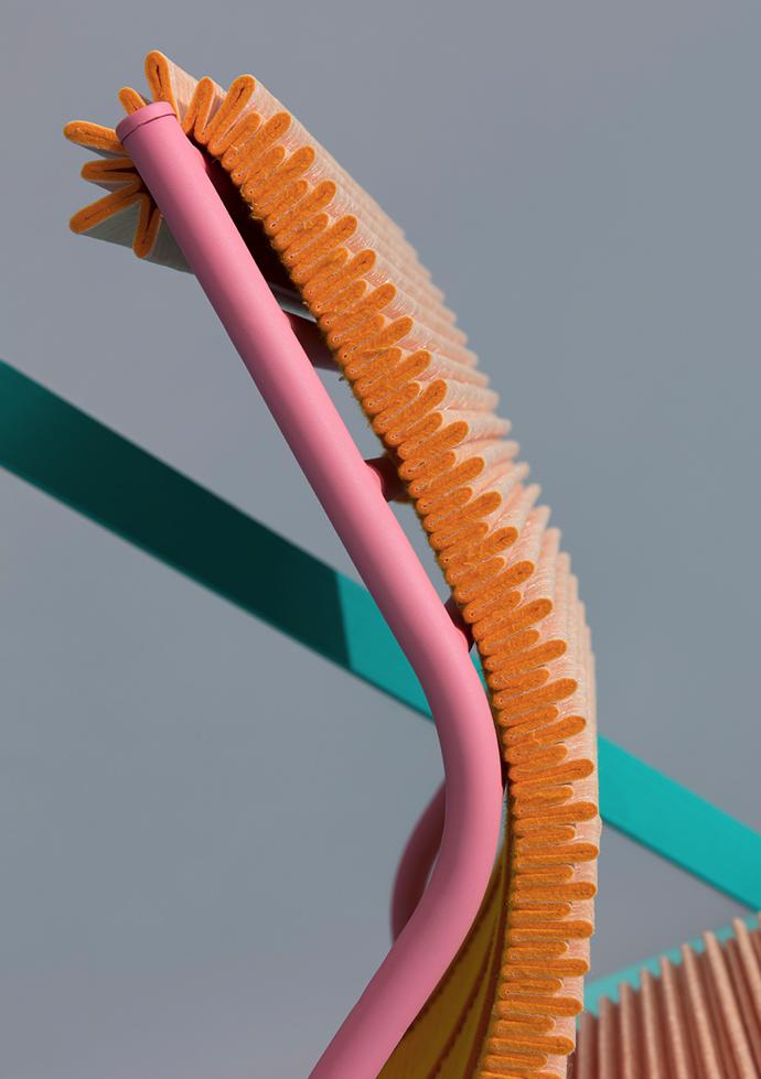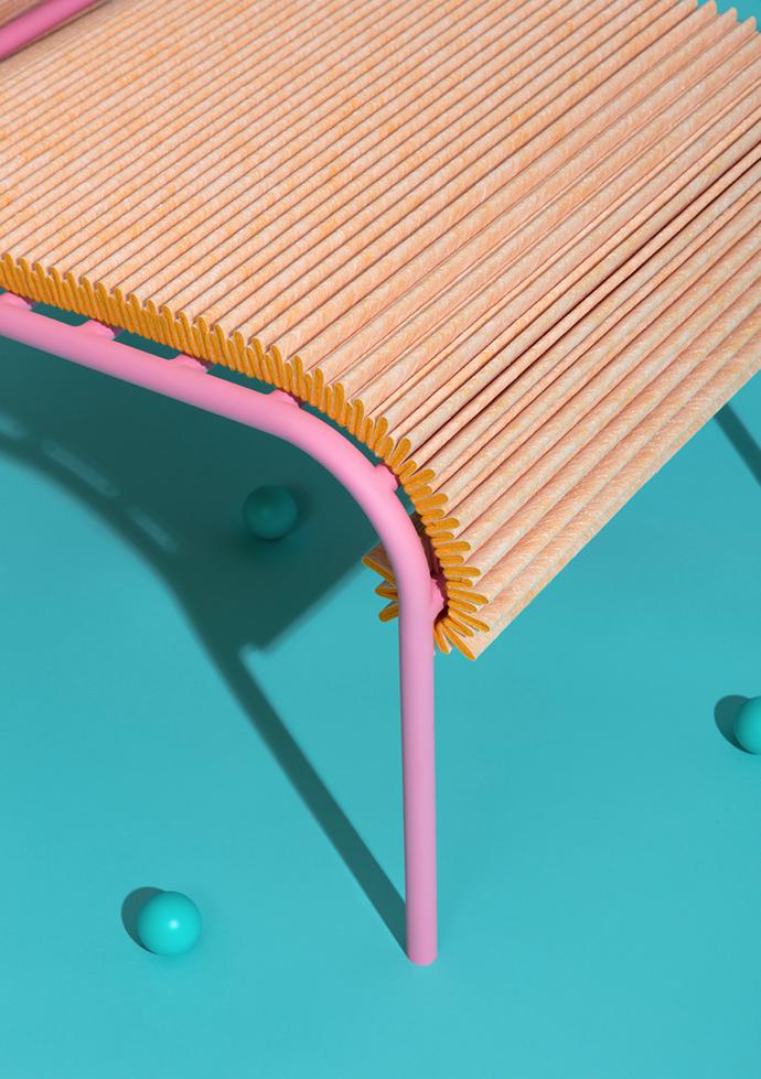 “Dutch designer Joris de Groot has designed a chair inspired by the production processes of air filters,” says Online Editor Lindi Brownell Meiring. “I just love the combination of the pleats with the pink frame.”