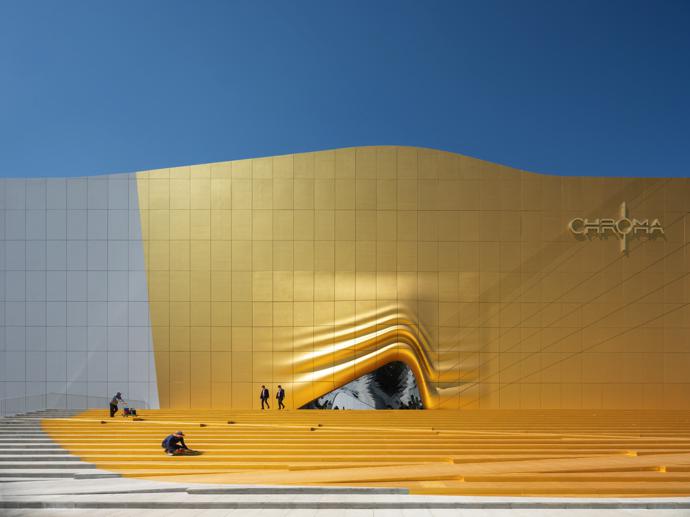 “Dutch design firm MVRDV (previously featured here) has completed a new leisure complex in Seoul called The Imprint,” says Online Editor Lindi Brownell Meiring. “So many things stand out, from the design of the gold entrance, which makes the building look as though part of it is being lifted up to the use of colour as shadow. I think it’s spectacular.”