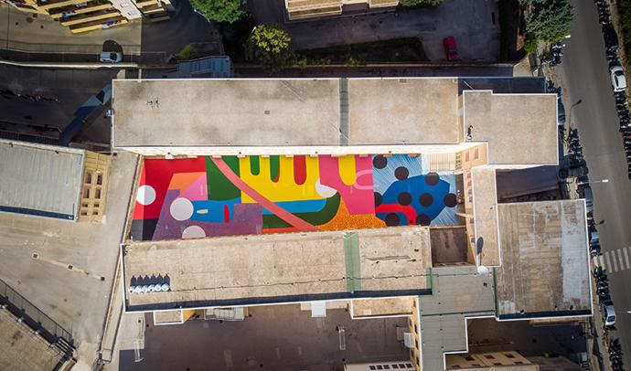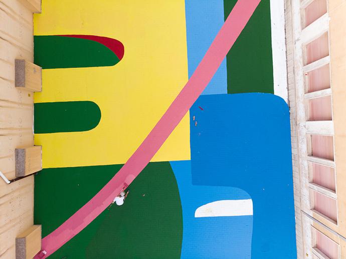 “Artist Alex Brewer (aka HENSE) has created a colourful courtyard for a high school in Sicily,” says Online Editor Lindi Brownell Meiring. “The 14- x 45-metre artwork, titled Ragusa Sun, is named after the city in which it is located.”