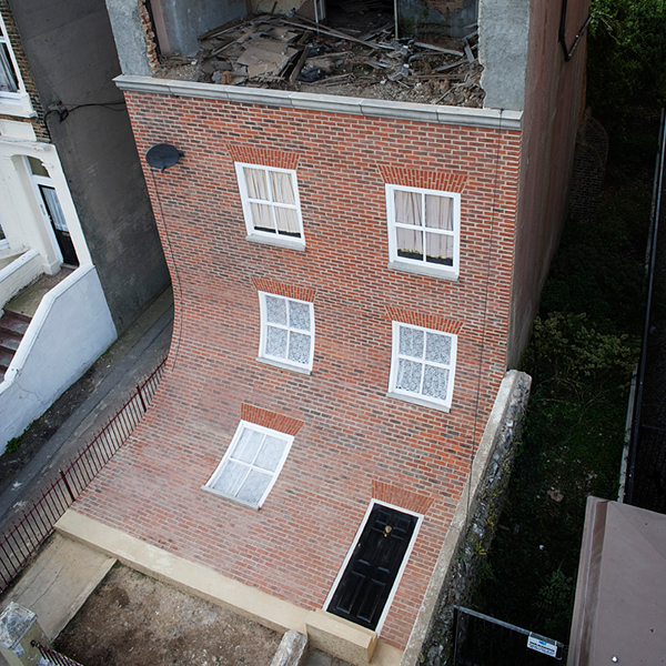 4. From the Knees of My Nose to the Belly of My Toes by Alex Chinneck : “Who said all house-revamps need to be practical?” features writer Debbie Loots says with mock seriousness. “Some can just be so visually striking that it lights up the entire neighbourhood, like this slipped down façade of an abandoned house in the UK.|