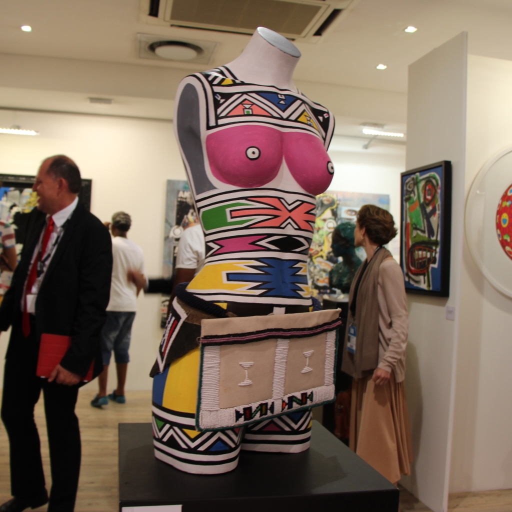 4. Artwork by Esther Mahlangu at the Cape Town Art Fair : "This glorious Ndebele-print mannequin, painted by the great Esther Mahlangu, is everything," ed-at-large Malibongwe Tyilo states simply. "I want to take it home and stare at it all day."|