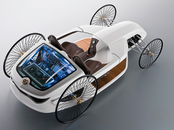 Met die hulp van die uitlaatgaslose brandstofsel-stelsel agter, haal dié waterstofaangedrewe kar ’n topspoed van 25 km/h en kan 350 km ry voordat jy moet stop vir brandstof.