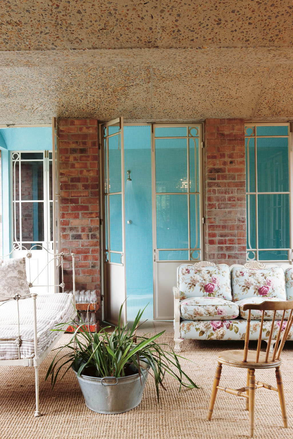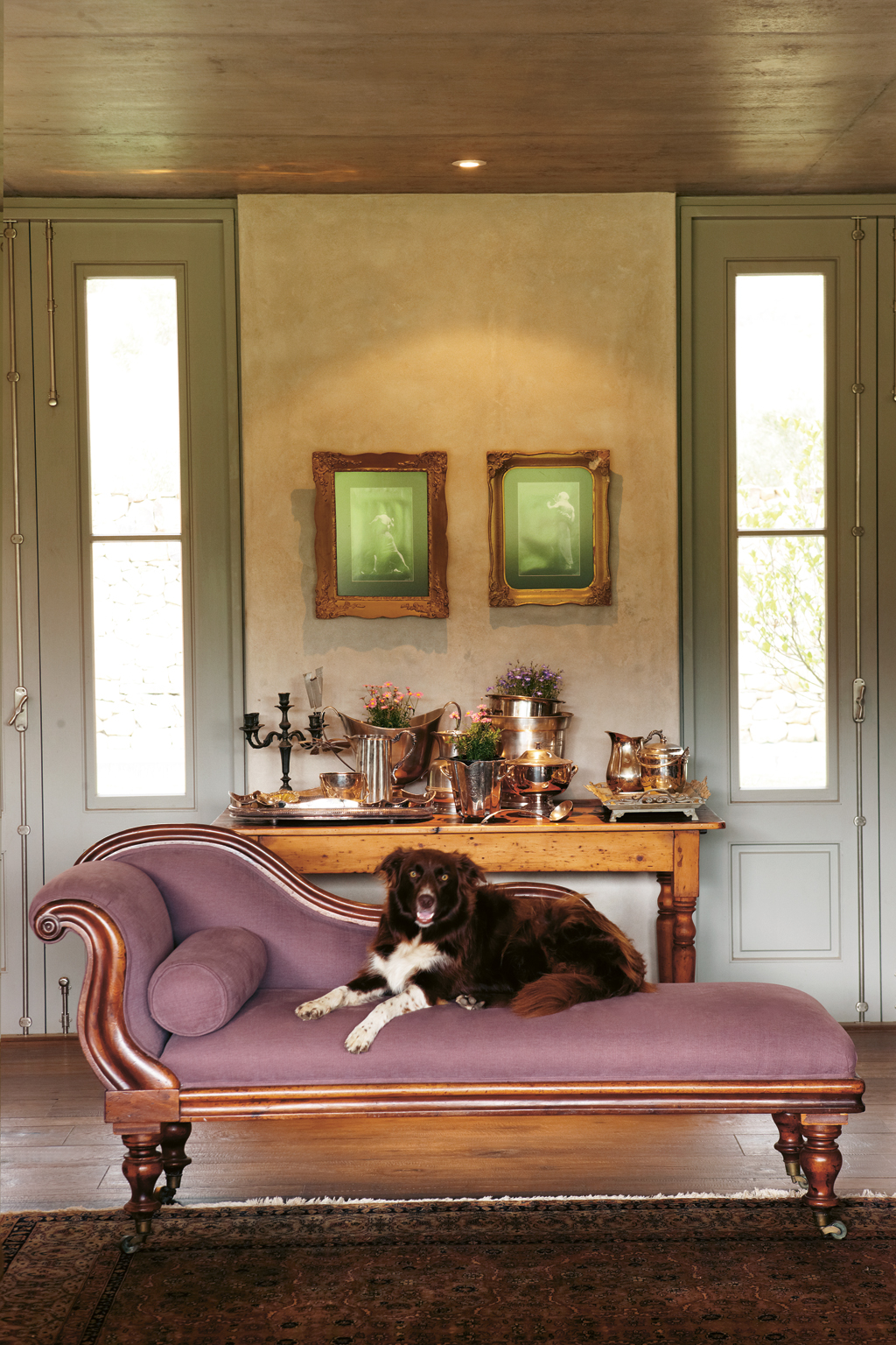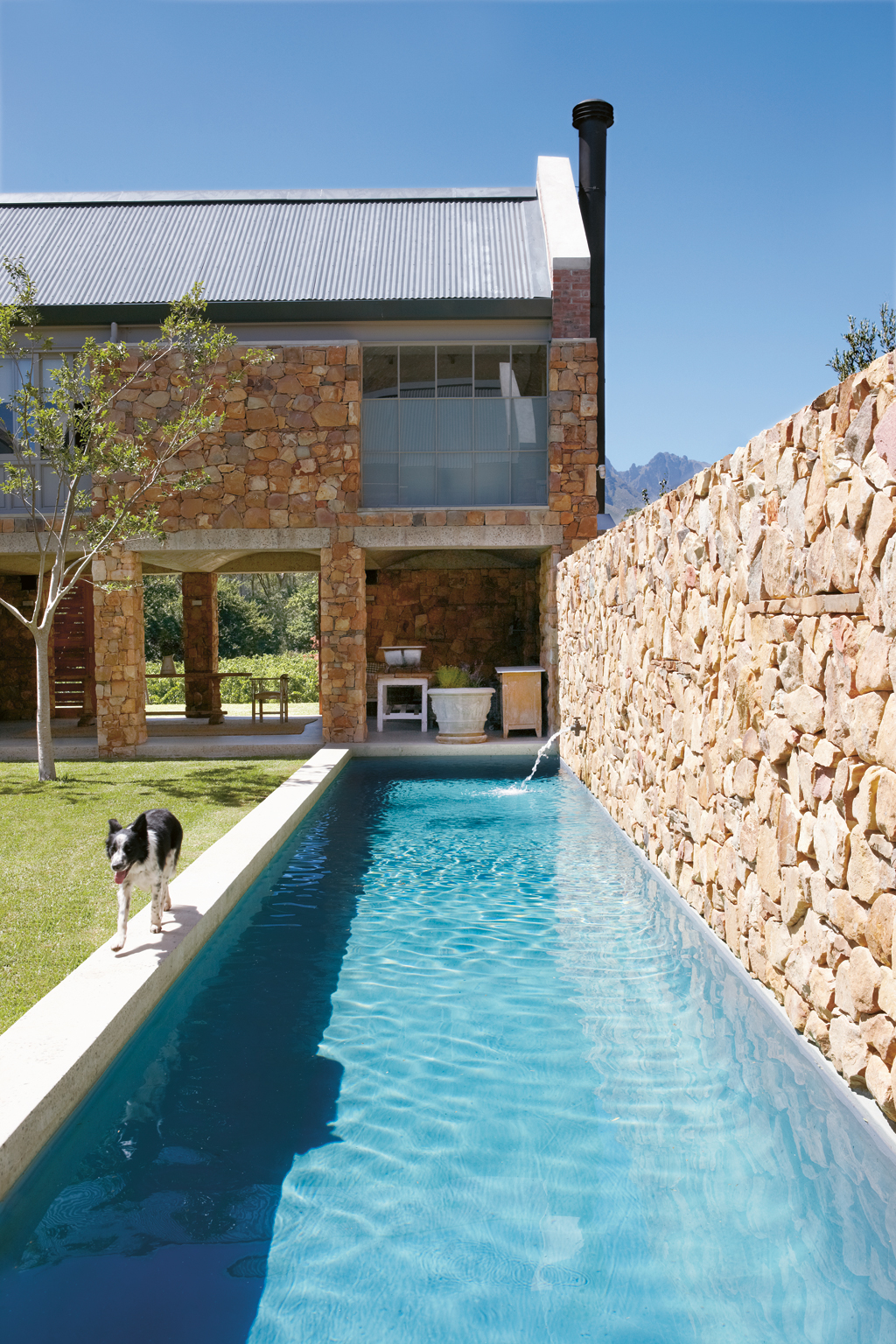 Because we live in the volatile Cape weather climate, I wanted to create “outdoor rooms” suitable for all conditions. The porch is great for breakfast in winter and the courtyard is cool in summer. The prevailing wind comes from down the valley, so heavy American-style barn doors can be used to close the courtyard when it’s blowing.