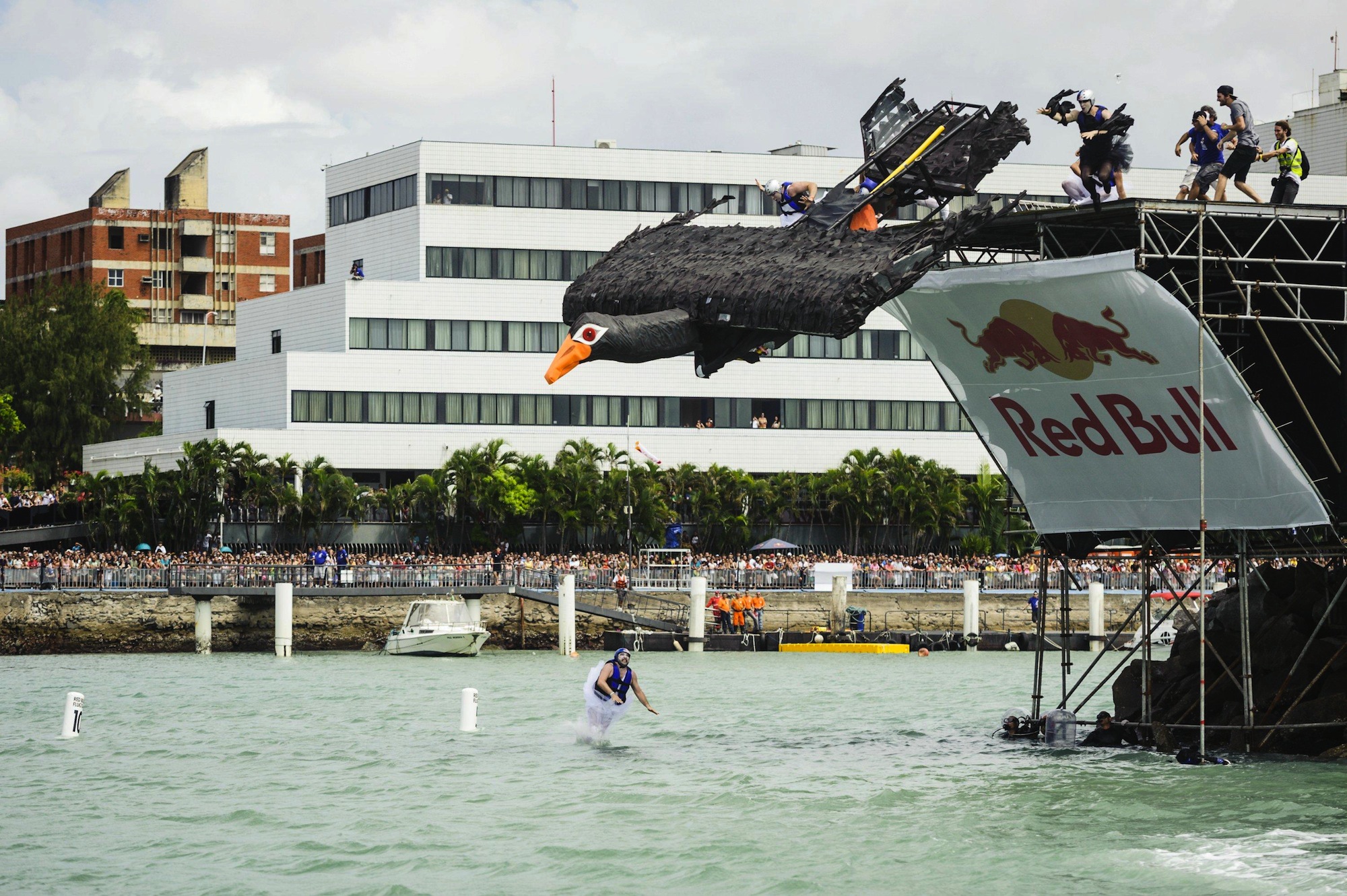 Red Bull Flugtag is a firm favourite internationally with over 100 versions of the event having taken place since the first in Austria in 1992. Spectators are treated to the pilots and crews hilarious pre-flight antics, elaborate flying machines, cringe-worthy attempts at the longest flight record and subsequent plummets into the wavy waters below.