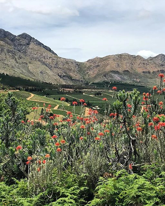 Om Pinot Noir draws its name from the sacred Om symbolising universal creation and peace. Its vineyards lie in the Hemel-en-Aarde Ridge (“Heaven and Earth”), a serene landscape close to Jessica’s heart. The label depicts flora and fauna of the Babylonstoren mountain reserve that surrounds the vineyard, fostering the connection between land and wine.