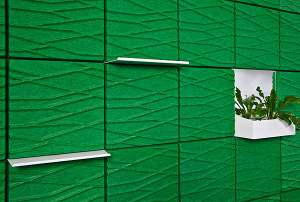 SHELF is a shelf that fits perfectly with Offecct’s selection of acoustic panels and offers the possibility to create SOUNDWAVE interiors containing shelves for storage of books and other objects.