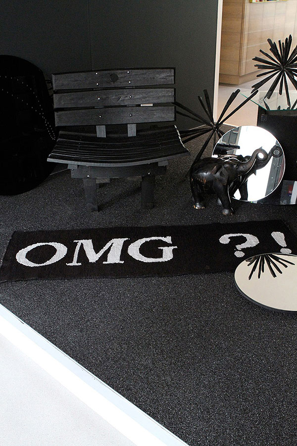 Product designer Liam Mooney of Dry Goods uses his “black-on-black” pod to feature products from his new range in an interior setting. Playing with reflections and different textures of black, Liam has worked with Quartz Carpet to create an all-new custom-mix black floor covering, which is not ordinarily part of their product range.