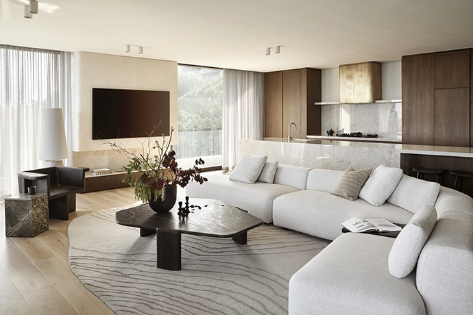 “For me, it was essential that the design of Atlas embodied authenticity and minimalism, with a palette of natural, earthy tones,” says Astrid. Designed in collaboration with Bloc Architects, the brief called for a home that reflects coastal living at its most refined – defined by tranquillity, simplicity and understated luxury. “This project exemplified client collaboration – from the initial brief to final installation, every detail was designed with trust. As a designer, there’s nothing more fulfilling than creating a space that fits a client’s vision so perfectly,” she adds.