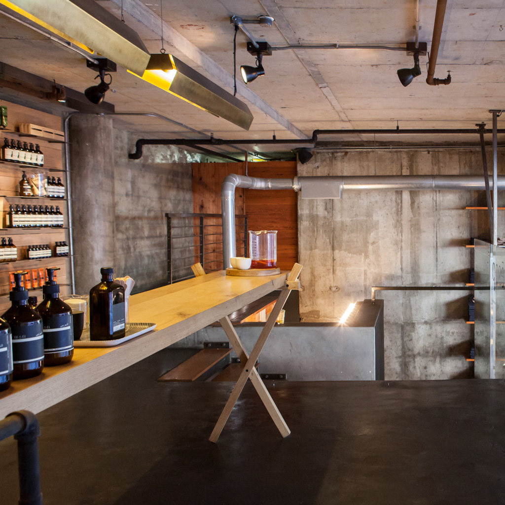 For its very first foray into Africa, the brand chose to partner up with Loading Bay – something of an institution in De Waterkant, and as popular for its famous burgers and coffee as it is for its international apparel ranges. Aesop gave Loading Bay a bit of creative flexibility with the opportunity to present their own ideas. Owner and founder Jon-Paul Bolus worked with architect Jacques Mouton and came up with ideas that Aesop loved.