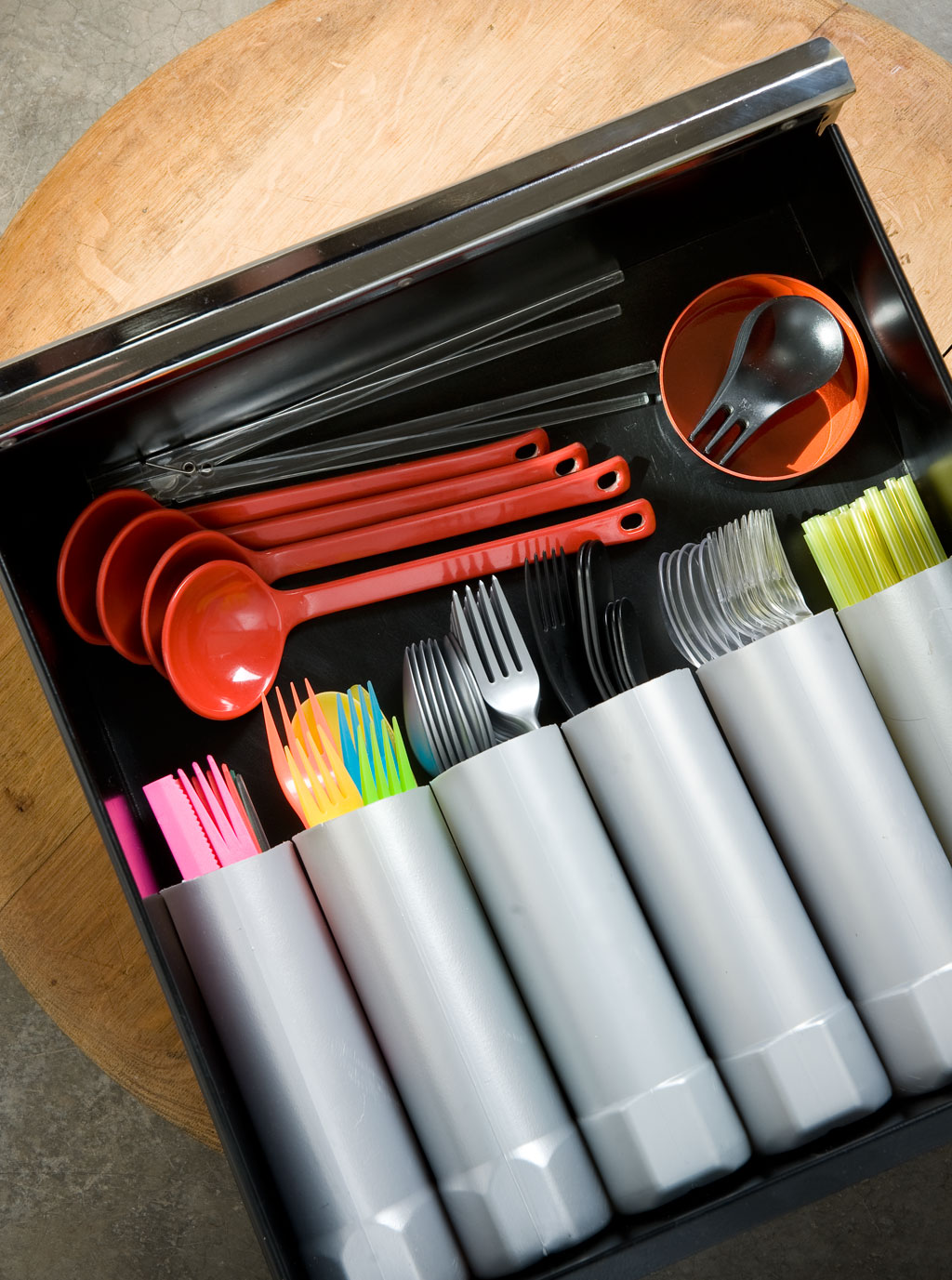 Plastic cutlery usually stays behind in the takeaway paper bag or gets discarded without another thought. But with sets available in vibrant colours, solid black or even designed by Philippe Starck, these former disposable objects are now irresistibly collectable.
