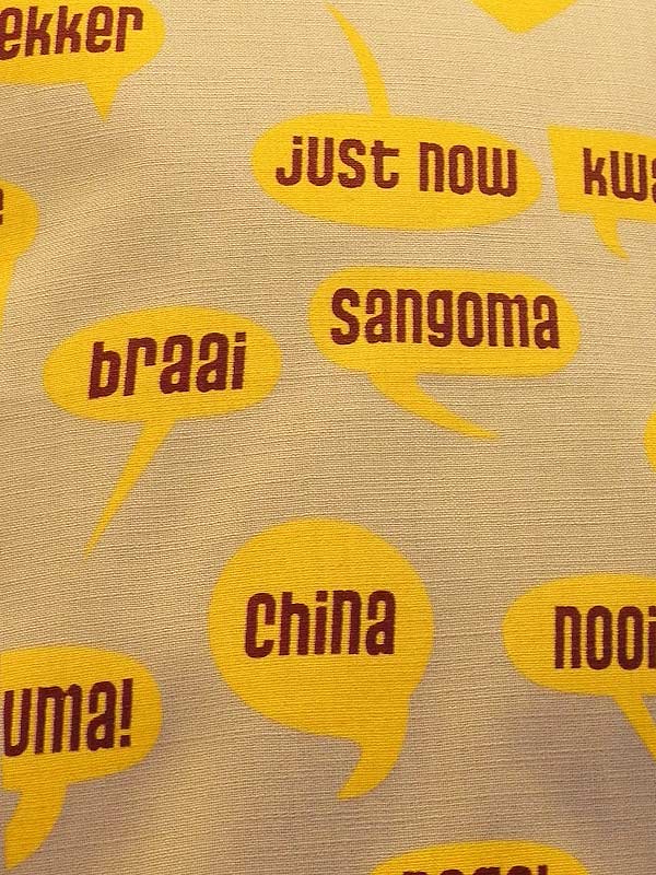 If you’re a lover of words, you’ll be smitten with the “Hello” and “I Love You” fabrics, in all the languages of Mzansi, and the fun “South Africanisms” print.