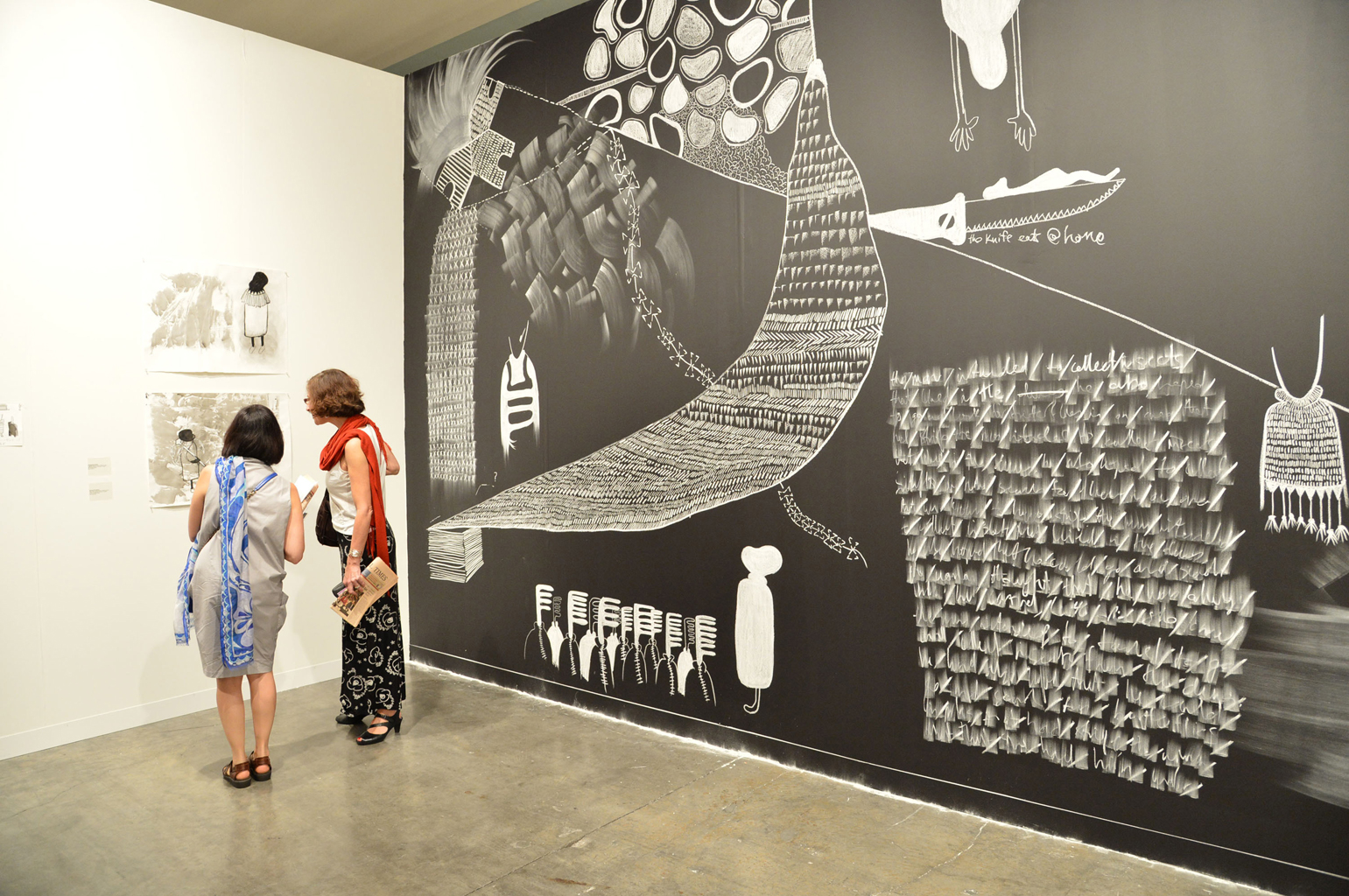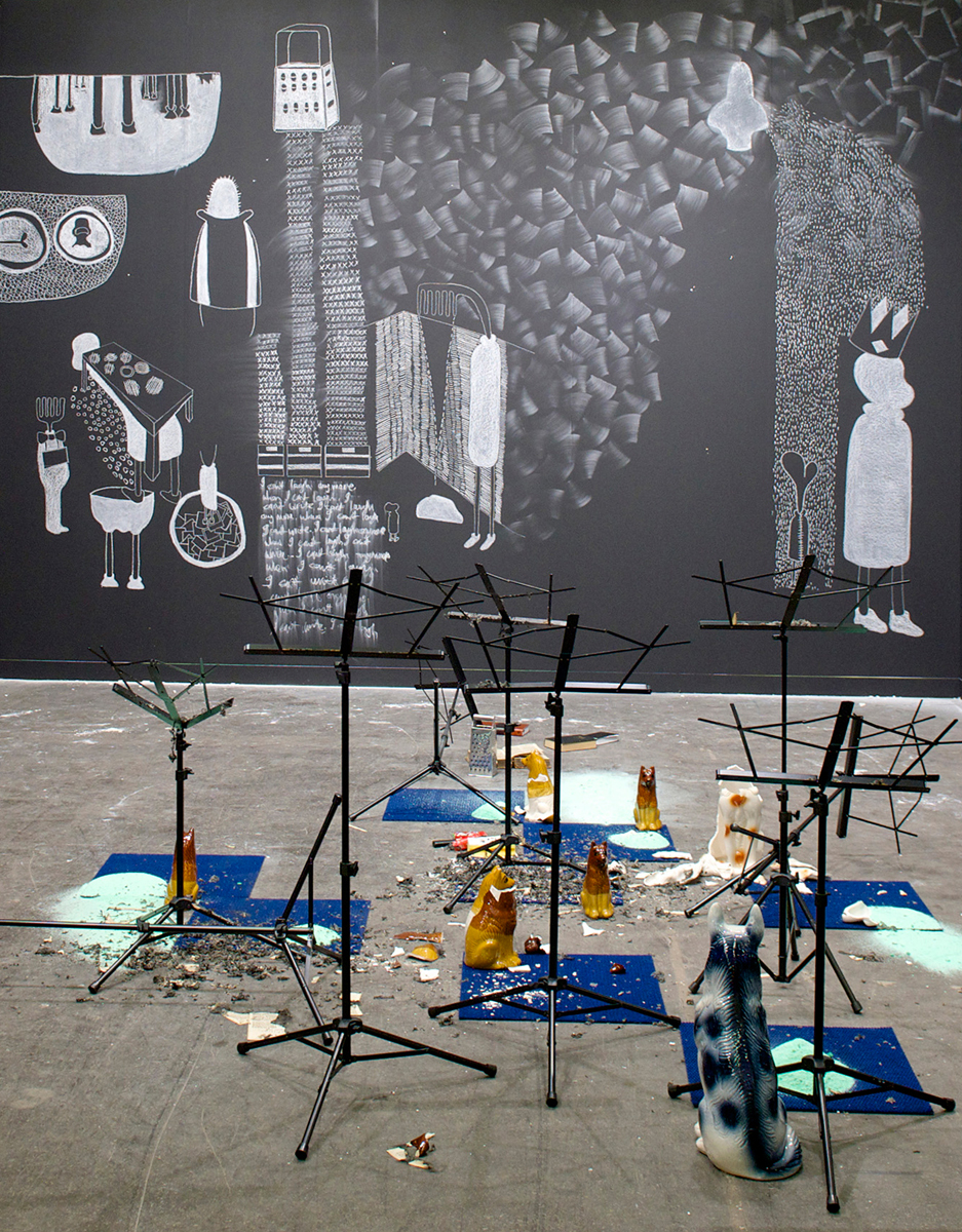 Entailing a room-sized blackboard installation, his exhibition statement reads: “In his work Kemang explores questions of collective memory and seeks to uncover the traces of South African history. To this end, he not only uses the devices of revealing and writing down but also of wiping out text and pictures. His wall-sized drawings, installations, performances and photographs establish a link between the trauma and myths of South Africa’s past and contemporary social issues. Kemang‘s works may be read as an archive, which demonstrates the process of forgetting and, like a collage, simultaneously opens avenues to new narratives that encourage multiple interpretations.”