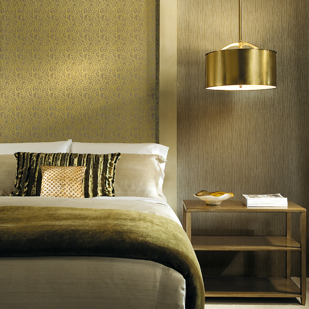 Although it can look over-the-top if you’re not careful, when used with restraint the rich shades of gold, bronze and silver create impact. For a dramatic bedroom for instance, try sophisticated gold wallpaper and precious metal accessories, like pillows in plush fabrics and statement lamps.