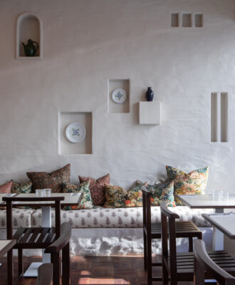 Inspired by the Japanese cooking tradition of robata or grilling over charcoal, Hyde Park’s KōL Izakhaya is all about fostering connections around the fire – in a space by Tristan Plessis Studio that features natural materials with luxe, tactile appeal.